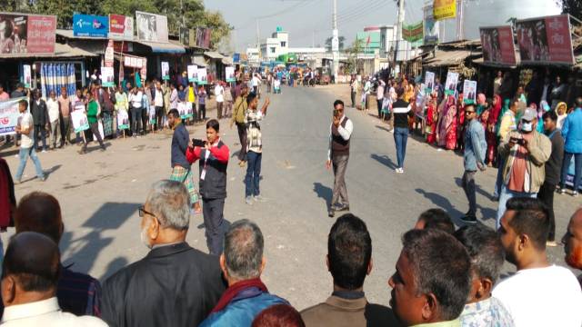 পার্বতীপুরে প্রার্থী পরিবর্তনের দাবিতে মহা সড়ক অবরোধ
